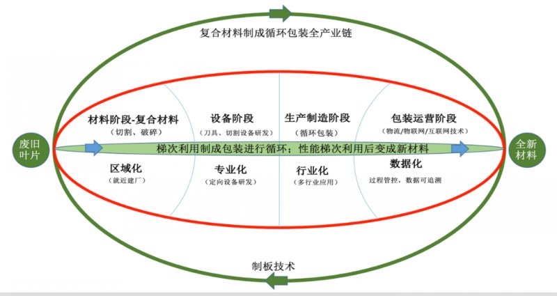 瑞和控股的“百年大计,迎难而上”口号,非常亮眼,能看出瑞和控股对于废旧叶片回收再利用整个产业链的分析和规划与期望同各行业企业共同合作的决心。瑞和控股把复合材料的叶片用梯次化分解切割制成包装,分阶段研发、制造室内外无尘best365英国体育在线、百变best365英国体育在线箱、以及自动化包装生产线,最后让制成的包装通过运营发挥更大的价值;让叶片的生命通过区域化回收、专业化切割、行业化综合利用,直到包装报废后再用性能分解法制成一种新的板材重新进入新的循环周期,实现可延续百年甚至更久。