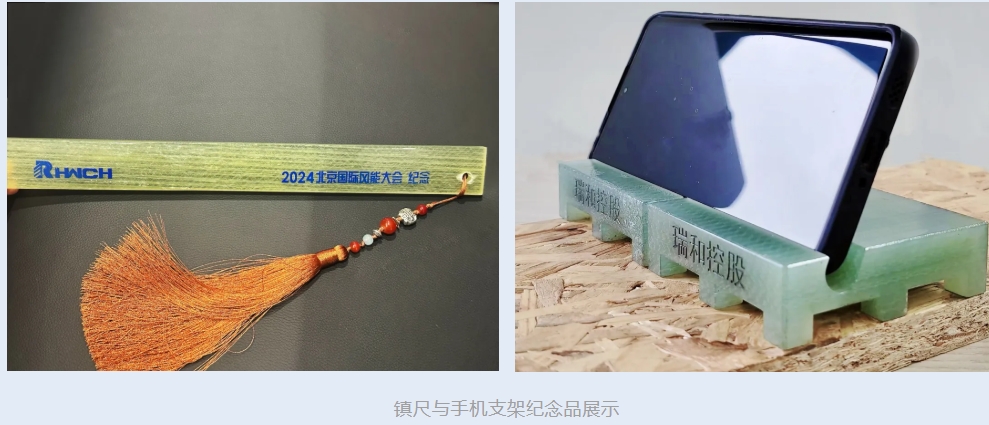利用叶片剩余料制作的大会纪念品——镇尺与手机支架,更是成为了整个风能展的亮点。
